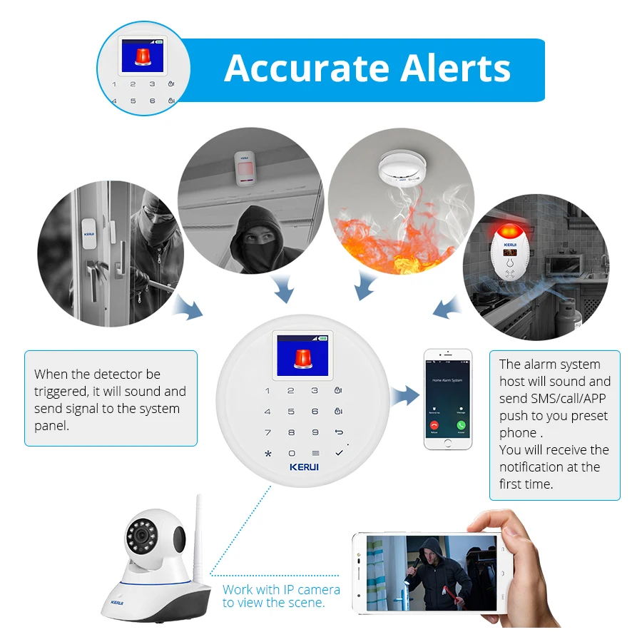 Addition Information for KERUI G17 Wireless Home GSM Security Alarm System APP Control Motion Detector Sensor Burglar Alarm Kit Six-language Switchable